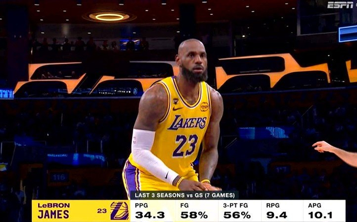 詹姆斯近3个赛季7战勇士 场均34.3分9.4板10.1助 三分命中率56%