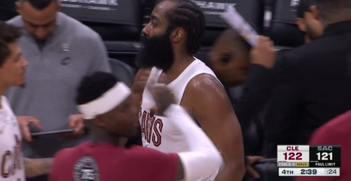 手很硬!哈登外线开火连中2记三分 率领骑士打出8-0夺回1分优势