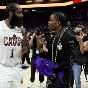 赛后,美国知名饶舌歌手Travis Scott打断了正在采访的哈登,从哈登手中抢过话筒在全美观众前大喊: