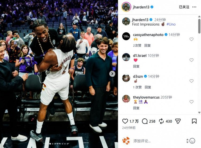 首秀赢球!哈登赛后更新社媒晒本场比赛多个瞬间:第一印象!