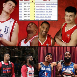 KD申京同进全明星 火箭队史97年以来第五对&比肩姚麦、登威