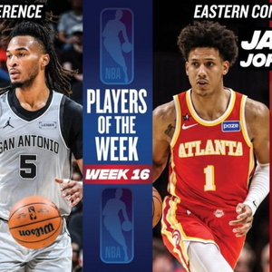 杰伦·约翰逊上周率队取得了2胜1负的战绩,场均可以得到27.3分12篮板11.3助攻。