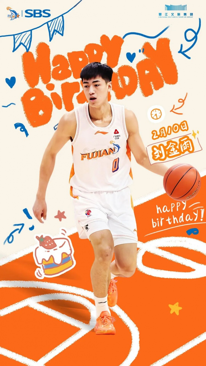 今天是刘金雨的生日,让我们一起祝福他生日快乐!2022年6月刘金雨入选U18国青男篮,出征亚洲U18男篮锦标赛,在4场小组比赛中,他场均能够砍下16.3分3.8篮板2助攻0.8抢断0.3封盖,得分领跑全队。2023-2024赛季,刘金雨升至广州龙狮男篮一队。在代表广州龙狮男篮征战CBA联赛首个赛季之后,2024-2025赛季刘金雨正式加盟福建SBS浔兴篮球俱乐部。作为主队主要轮换球员,上赛季刘金雨共代表主队出战CBA联赛41场比赛,场均上场20.2分钟,可以得到5.6分1.9篮板1.1助攻。2025年6月9日,中国篮协公布了新一期国家男篮集训名单,刘金雨成功入选。本赛季截止第一阶段,刘金雨共代表主队出战CBA联赛19场,场均9.3分钟,可以得到2.9分。最后,在这个特别的日子里,想对金雨说:“且视风雨如微澜,心有山海自愈坚” 。请相信,所有的沉淀皆为蓄力,所有的蛰伏都在扎根。希望金雨持续进步,助力主队在本赛季取得更好的成绩。