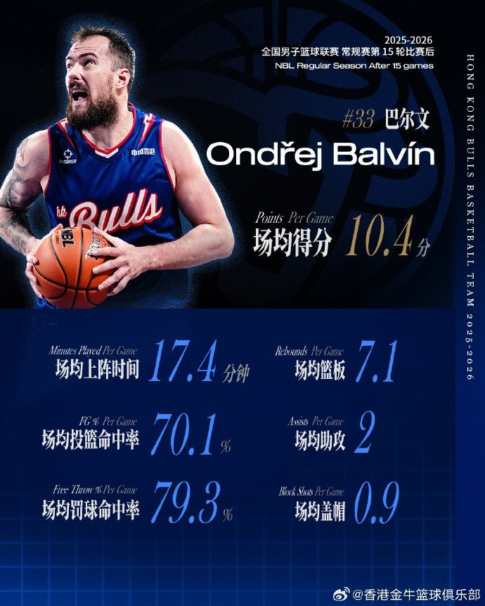 「禁区守护神」——巴尔文 场均贡献10.4分7.1板&命中率高达70.1%