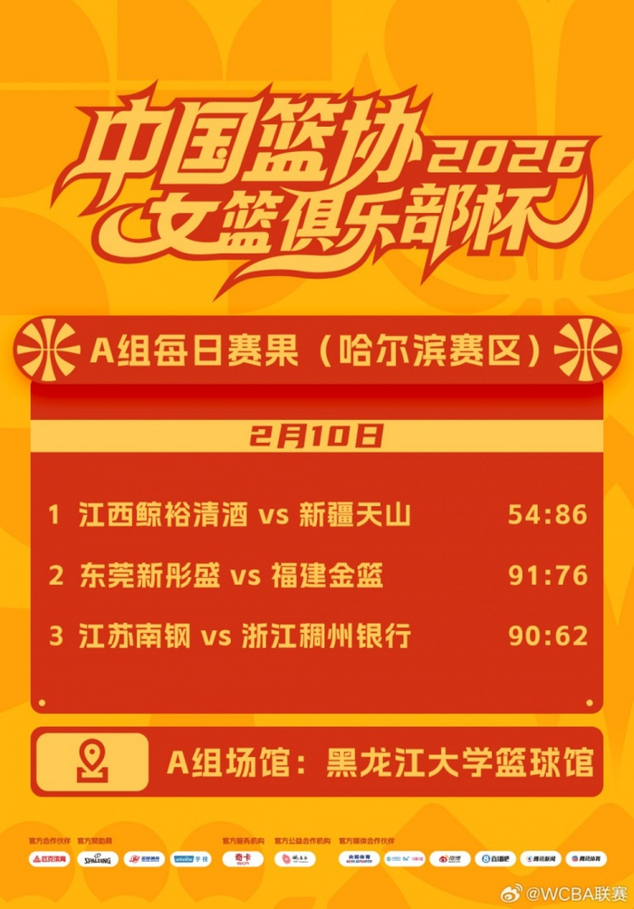 2026年中国篮协女篮俱乐部杯 2月10日赛果来啦