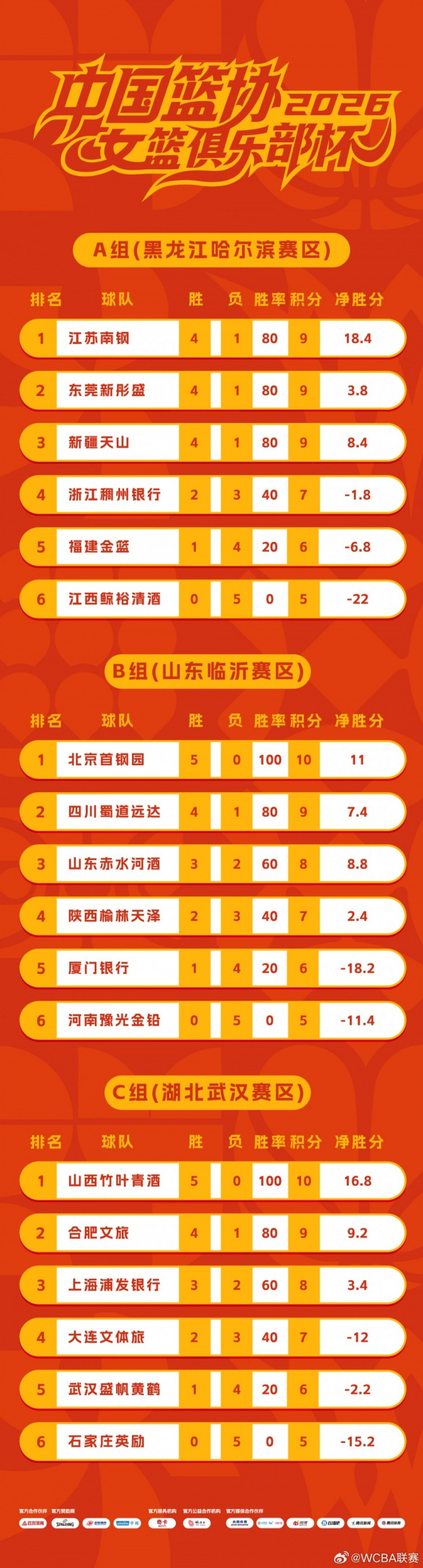 2026年中国篮协女篮俱乐部杯!请查收各赛区排行榜 !