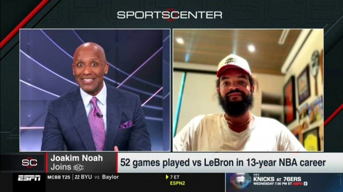 直播吧2月11日讯 今日,前NBA球员诺阿做客ESPN电视节目《Sports Center》,谈到湖人前锋詹姆斯。