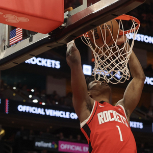 风卷残云!火箭抢断反击 阿门一条龙飞身扣篮将分差拉开到两位数