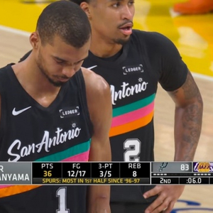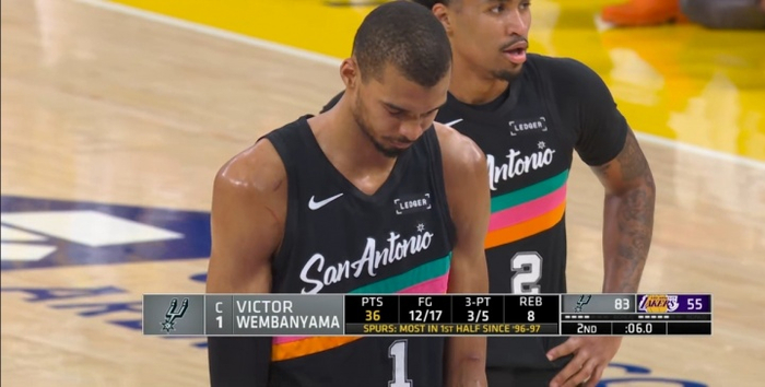文班半场狂轰37分 马刺Play-by-play时代上半场最高纪录!