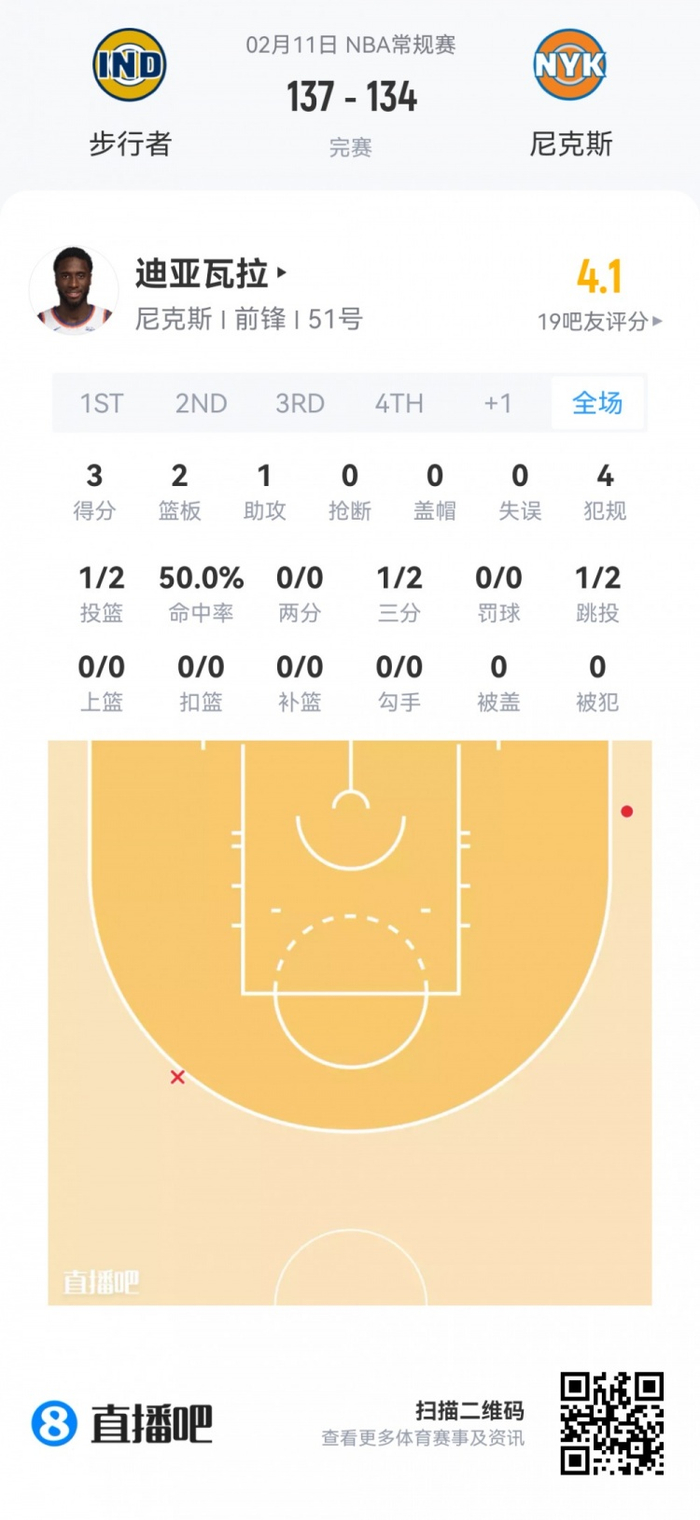 尼克斯次轮51号秀穆罕默德·迪亚瓦拉 登场18.5分钟