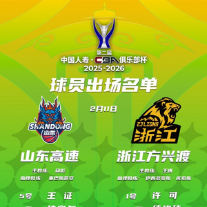 俱乐部杯季军赛山东VS广厦大名单!广厦仅8人出战!