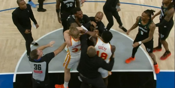 直播吧2月12日讯 在此前老鹰和森林狼的比赛中,森林狼球员里德和老鹰球员穆罕默德·盖耶发生冲突,裁判回看后两人都遭到驱逐。