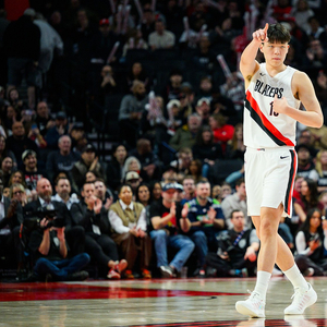 上半场比赛,开拓者中锋杨瀚森并未得到上场时间。