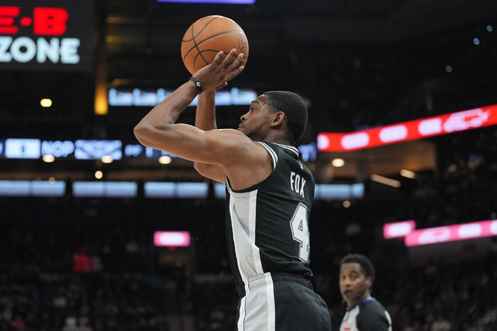 马刺后卫福克斯上半场表现高效,他打了16分17秒,9投6中(三分3中2),拿到14分5助攻1抢断,有2次失误,正负值+2。