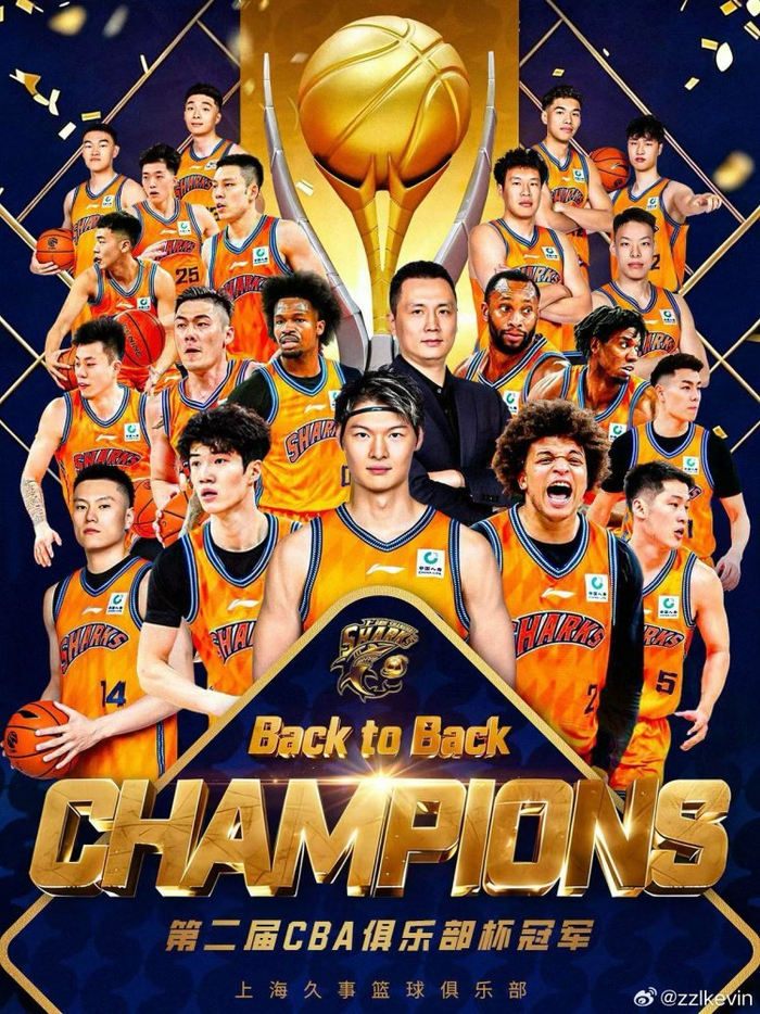在参加中国男篮集训备战的上海队球员张镇麟晒出球队夺冠海报,并配文写道:“冲鸭!! ”