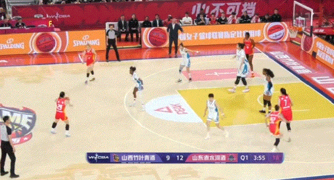简单的弧顶转移球,山东女篮的联防被掩护挤在了一起,忽略了45°和底角的山西球员