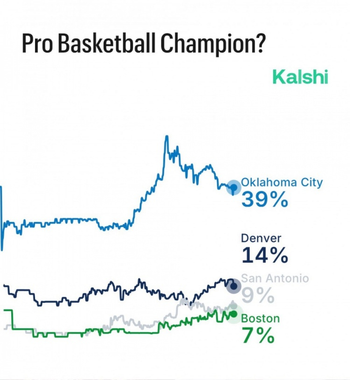 最新夺冠概率:雷霆39%独一档 掘金14% 骑士7% 火箭&湖人均4%