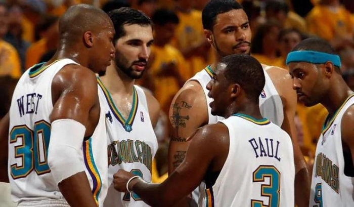 大卫·韦斯特在NBA前两年首发了9场,命中率45%。三年级他遇到了新秀年的保罗,吃了171次助攻,坐稳了黄蜂首发,得了“17尺刺客”的绰号。