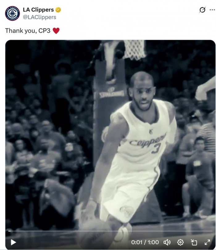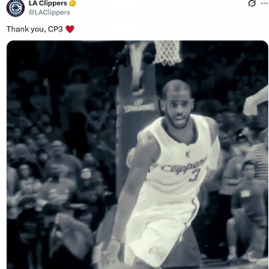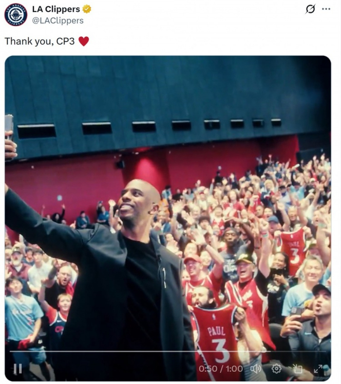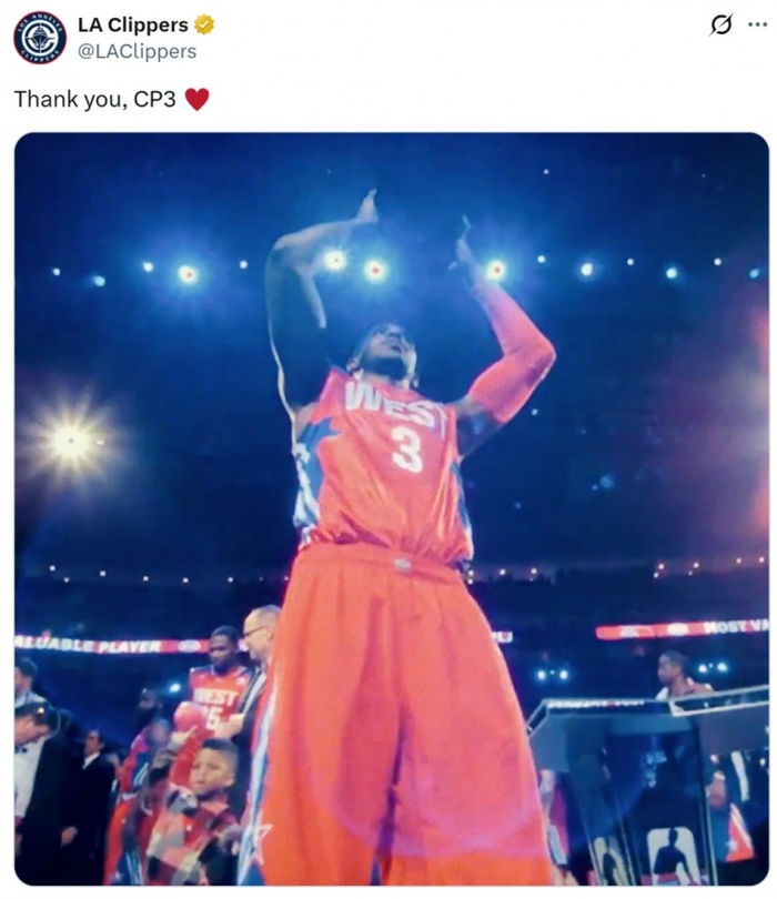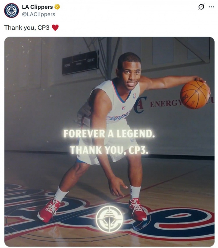 虽迟但到!快船官方发推感谢保罗:永远的传奇 谢谢你CP3