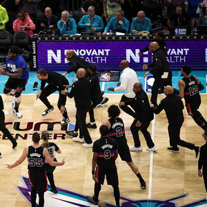 他说:“但这让我意识到,你看,虽然人人都爱谈论,球员之间关系都很好,相处得十分融洽;可黄蜂和活塞这场比赛,两支强队之间居然火药味这么浓。有意思的是,在我看来那个犯规根本不算什么,这说明之前肯定积攒了不少口角,或者有些镜头没拍到的肢体冲突,真正的问题根本不是那次犯规,而是后续的冲突。”