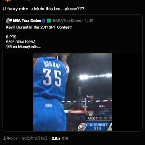 有网友转发了杜兰特2011年参加三分大赛的集锦,他当年总得分仅得到6分,25投5中(命中率20%)、花球5投1中。