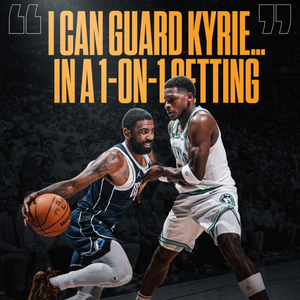 爱德华兹谈能否1v1防住欧文:“哦,肯定能防住。唯一的问题是5v5比赛时,场上太多事情,我得到处追他。如果是1v1的话,我就很自信。”