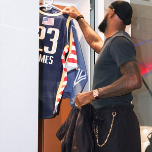 直播吧2月16日讯 今日,湖人官推晒出一组詹姆斯和东契奇的全明星球衣照。