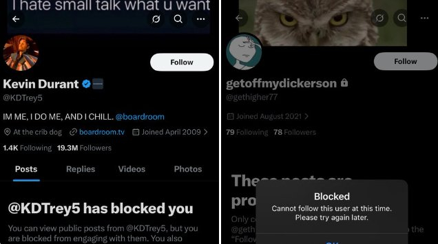 有网友表示,杜兰特的大号将他拉黑了,而这个他不认识的疑似小号也将他拉黑了,所以他确定这个账号就是属于杜兰特。