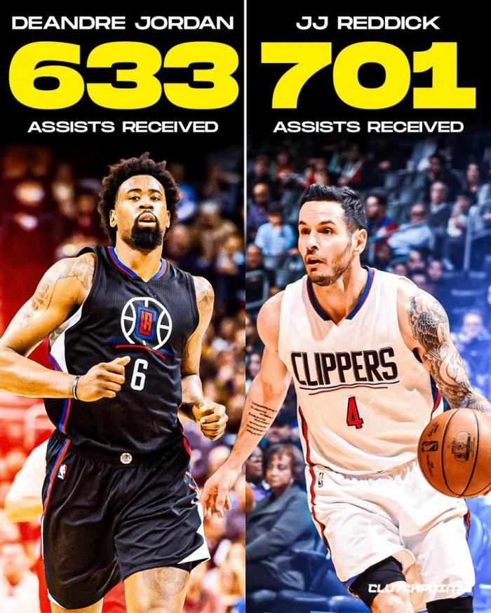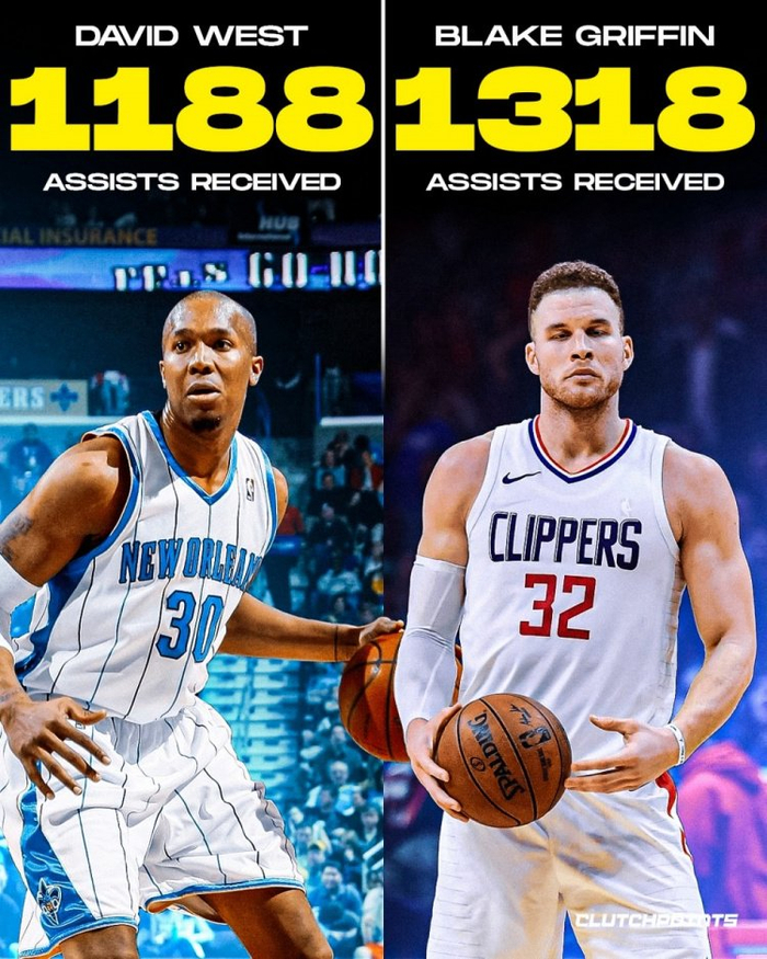 得到保罗助攻最多的18位球员!格里芬1318次最多 雷迪克701次第3