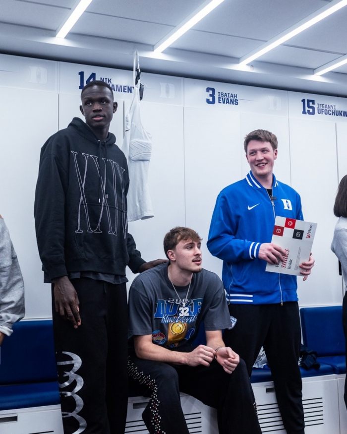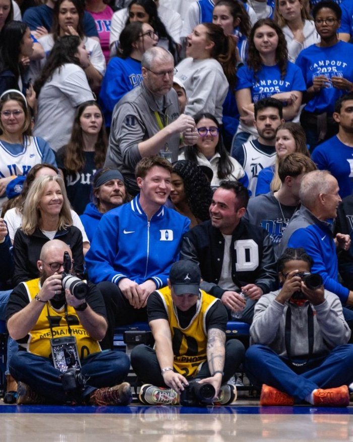 直播吧2月18日讯 杜克大学男篮更新社媒,晒出了克尼佩尔、弗拉格还有马卢阿奇三位校友回母校看球的照片。