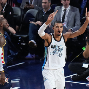 谈到文班亚马成为NBA门面的可能,他说:“你知道我们现在总想强行捧某些人上位,但我觉得这事其实该是水到渠成的,而且我们能预见这种趋势。就像当年勒布朗那样——他进联盟前就被预定为门面,魔术师和乔丹也是如此。乔丹拿了NCAA冠军,又在奥运会上击败所有对手,大家自然觉得'就是他了'。”
