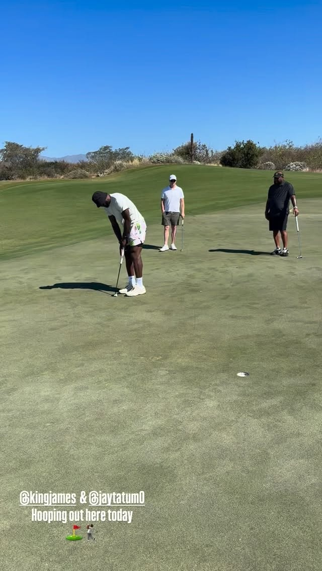 你也好这口儿!塔图姆更新社媒 晒出与老詹&乐福一起打高尔夫动态