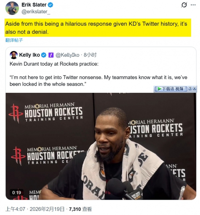 记者Erik Slater说:“考虑到杜兰特的推特历史,这回答是非常可笑的,并且,这也不是一个否认。”
