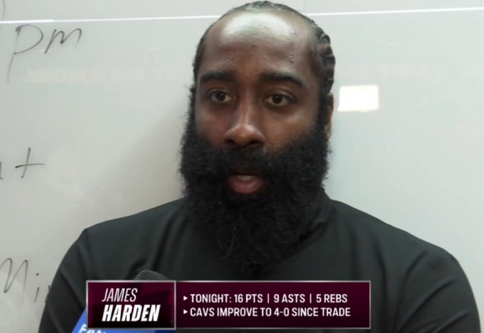 直播吧2月20日讯 NBA常规赛,骑士以112-84战胜篮网。赛后,哈登接受了媒体的采访。