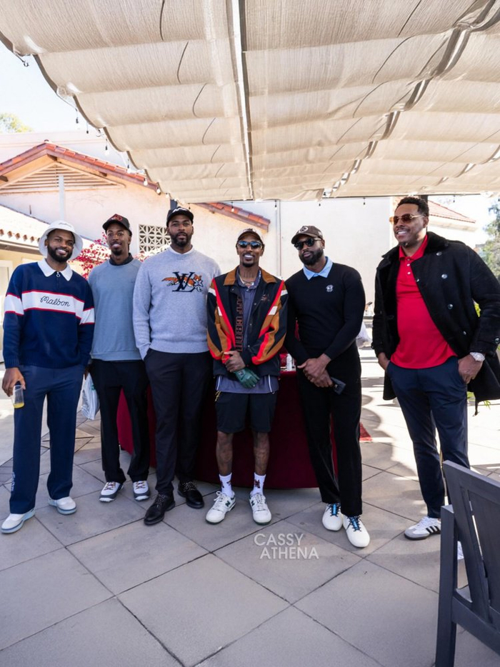 参加高尔夫比赛的又韦德、皮尔斯、阿里纳斯、达瑞尔-莱特兄弟、尼克-杨、特洛伊-丹尼尔斯、肯扬-马丁、波普、奥尼尔的儿子谢里夫等人。