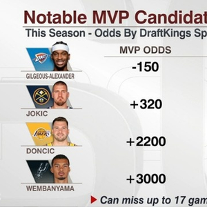 剩者为王?常规赛MVP赔率SGA遥遥领先 其他竞争者均已缺战12+场