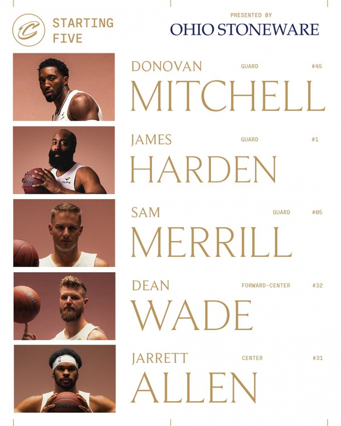 骑士:多诺万·米切尔、哈登、梅里尔、迪恩·韦德、贾勒特·阿伦。