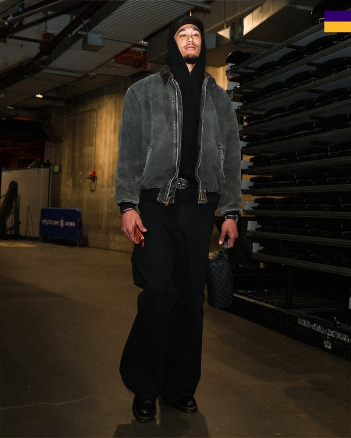 直播吧2月21日讯 今日,湖人官推晒出一组球员赛前入场照。