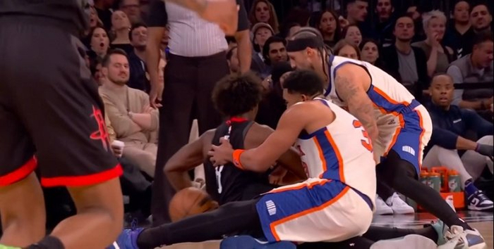 唐斯凶狠扑球 一屁股坐到泰特右膝致后者受伤 被队友搀扶离场