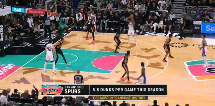 生龙活虎!马刺本赛季场均5.6次扣篮 追平队史最高纪录