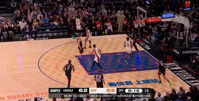 火力压制!杜兰特三分命中 火箭下半场轰11-2领先10分打停尼克斯
