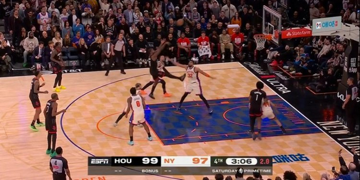 防守建功!布伦森奋力堵枪眼 造成阿门进攻犯规