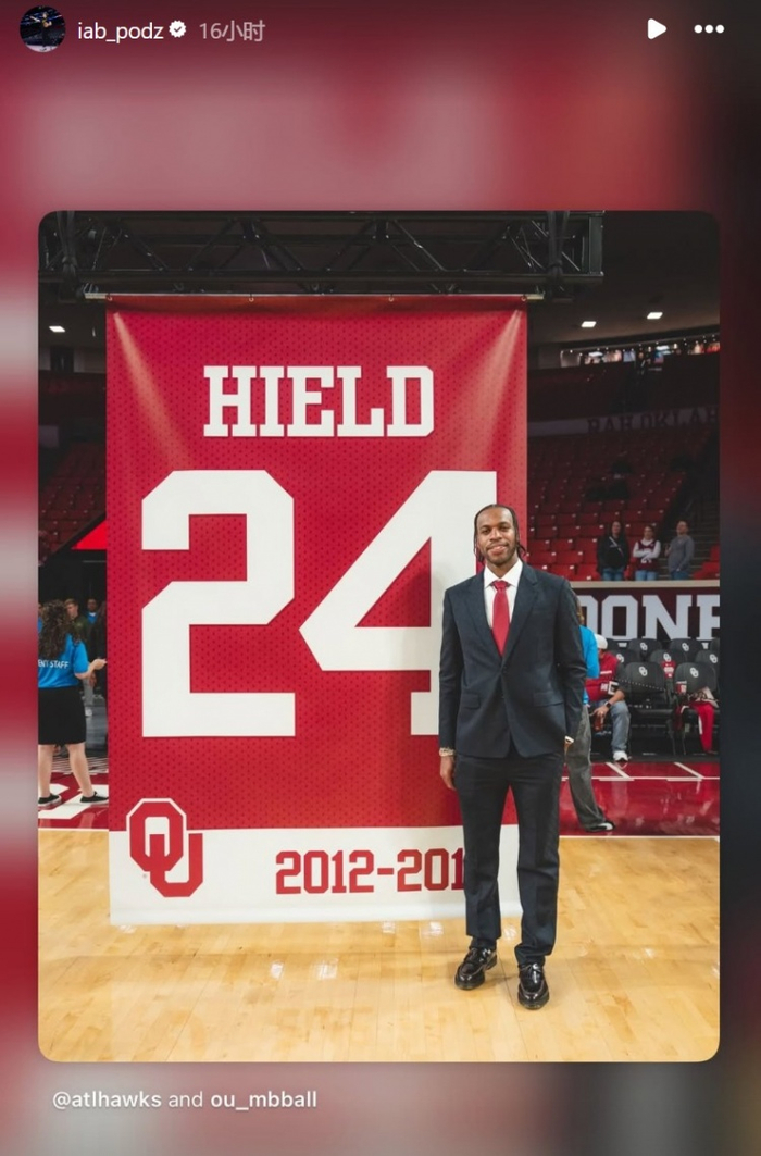 希尔德大学球衣在俄克拉荷马大学退役!波杰姆、库明加转发送祝福