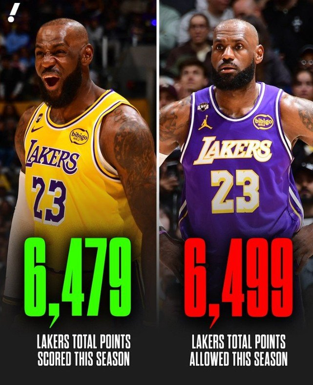 本赛季至今,湖人34胜22负西部第五,胜场数超过5成胜率12场,而他们赛季总得分为6479,总失分为6499,总净胜分为-20。