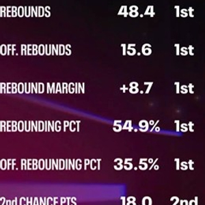 场均篮板48.4个 联盟第1