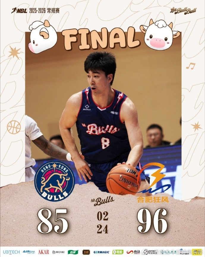 末节决战,阿诺斯克依靠连续罚球反超比分。琼斯连突带投拿下5分后,助攻侯天一内线取分。唐才育完成抢断反击打成2+1,厄特尔突破上篮并命中罚球。常规时间末段,对手命中三分扳平比分至81平,将比赛拖入加时。加时赛,香港金牛手感不佳,最终以85-96不敌合肥狂风。