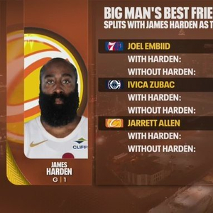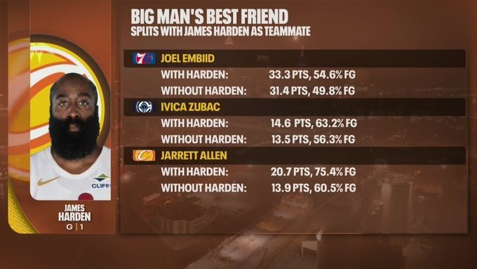 我就是体系!恩比德&祖巴茨&阿伦搭档哈登 得分命中率均显著提升