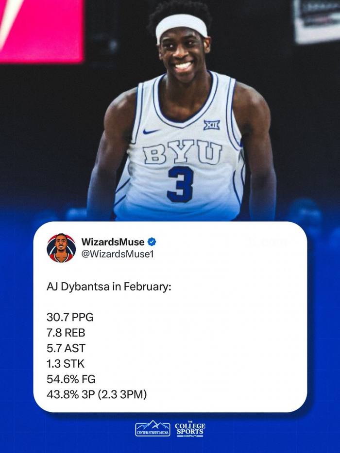 直播吧02月25日讯 奇才自媒体今日晒出了26年状元大热AJ·迪班萨2月份的数据。