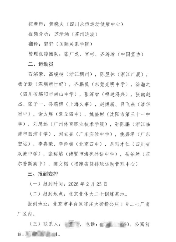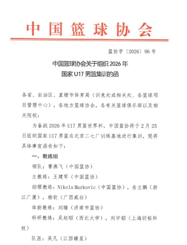 直播吧2月25日讯 中国篮协公布了中国U17男篮的集训名单。