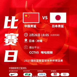 【赛事预告】北京时间2月26日18:05,中国男篮将在世预赛第二窗口期的比赛中客场挑战日本男篮。赛前技术会上,中国男篮提交了本场比赛的12人名单:赵继伟(辽宁本钢)、赵睿(北京首钢)、廖三宁(北京北控)、高诗岩(山东高速)、贺希宁(深圳新世纪)、李弘权(上海久事)、朱俊龙(浙江广厦)、王浩然(深圳新世纪)、胡金秋(浙江广厦)、焦泊乔(广东宏远)、张镇麟(上海久事)、余嘉豪(西乙坎塔布里亚)。